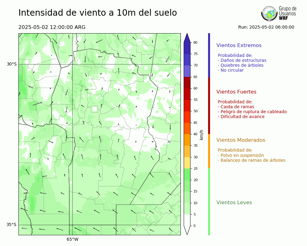 • Intensidad máxima: 8.48 km/h (02/05/2025 17hs.)