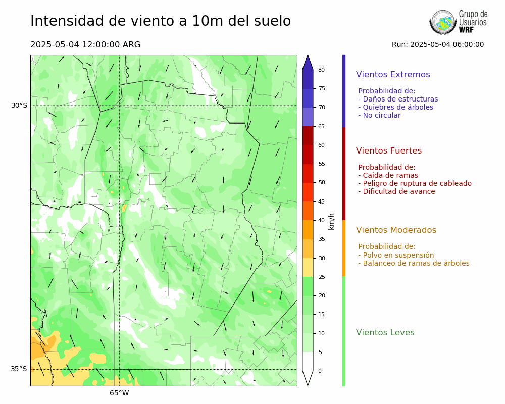 • Intensidad máxima: 6.88 km/h (04/05/2025 23hs.)