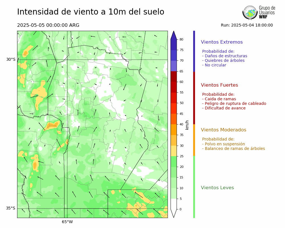 • Intensidad máxima: 14.00 km/h (05/05/2025 00hs.)