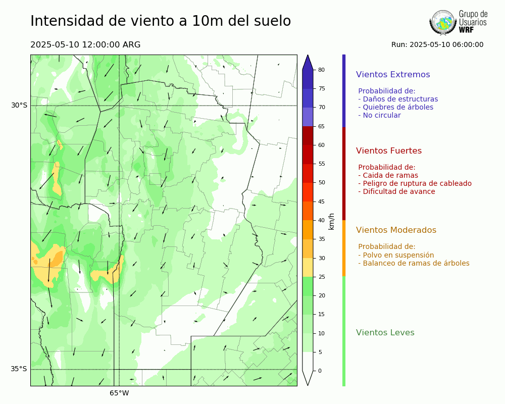 • Intensidad máxima: 22.62 km/h (10/05/2025 22hs.)