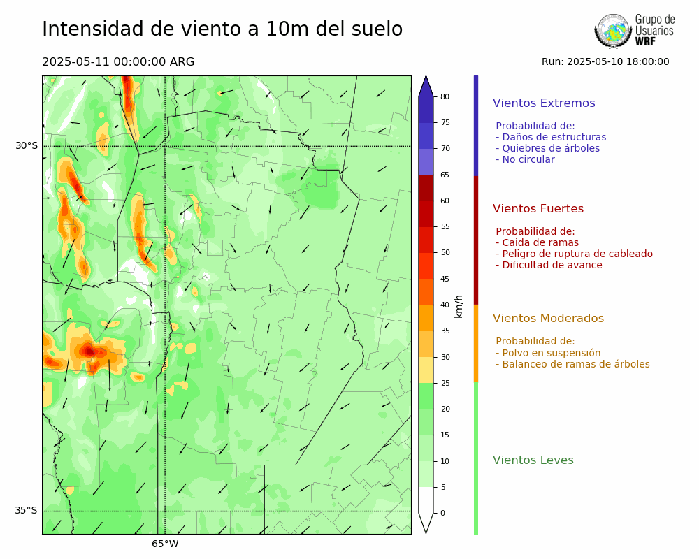 • Intensidad máxima: 30.62 km/h (11/05/2025 10hs.)