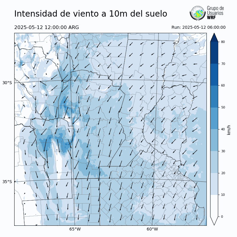 • Intensidad máxima: 27.64 km/h (12/05/2025 16hs.)