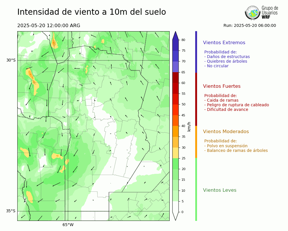 • Intensidad máxima: 12.50 km/h (20/05/2025 19hs.)