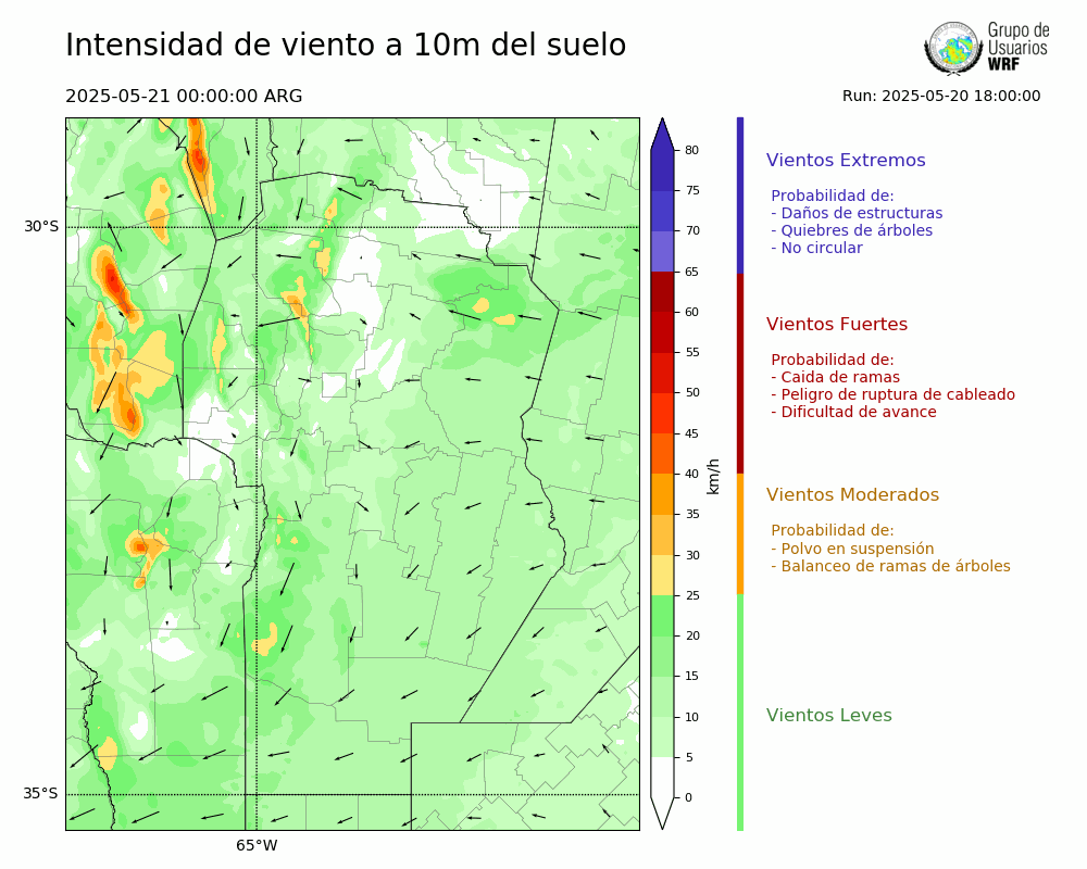 • Intensidad máxima: 6.70 km/h (21/05/2025 11hs.)
