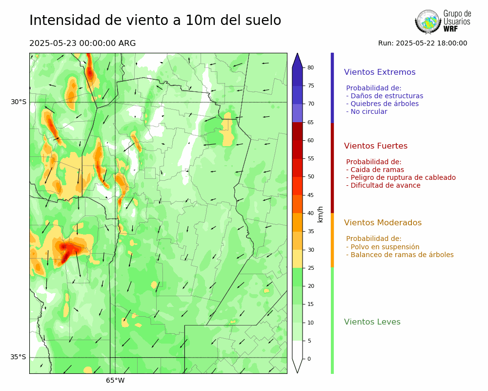 • Intensidad máxima: 9.19 km/h (23/05/2025 04hs.)