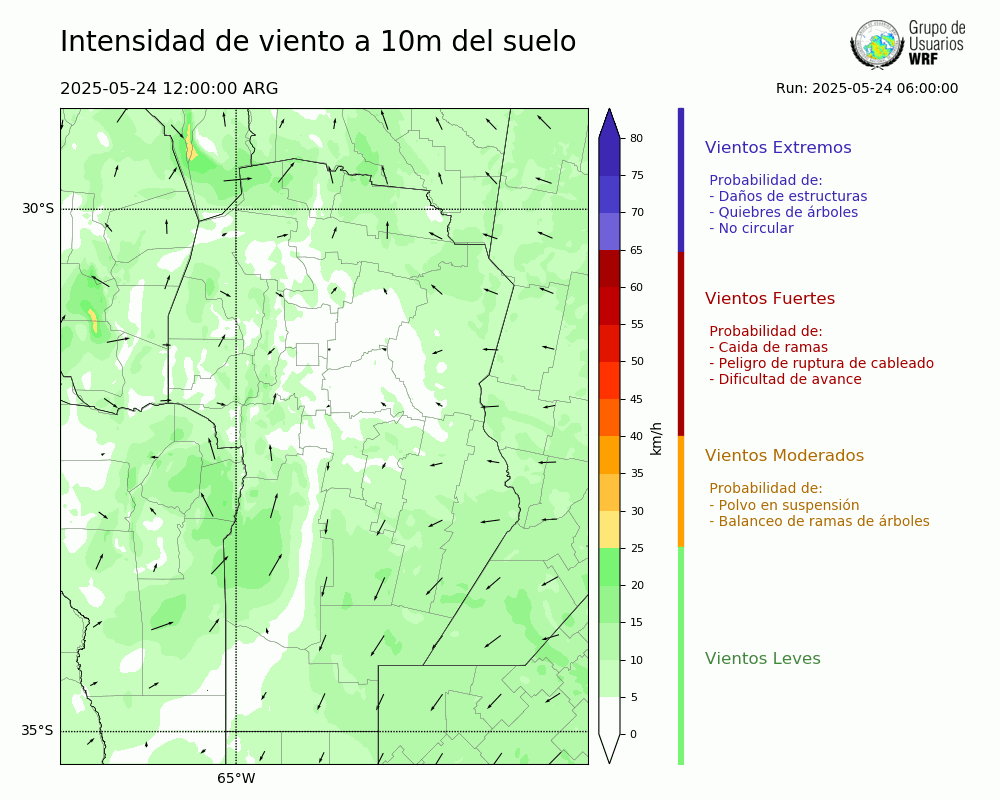 • Intensidad máxima: 5.87 km/h (24/05/2025 20hs.)