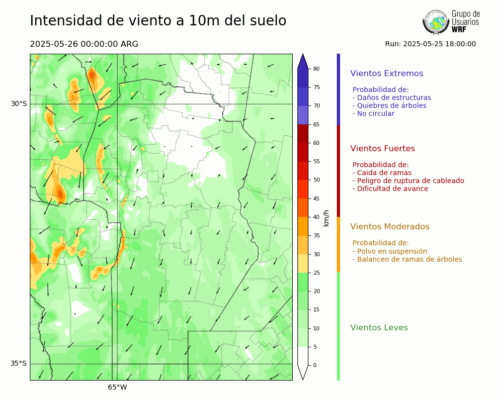 • Intensidad máxima: 9.64 km/h (26/05/2025 17hs.)
