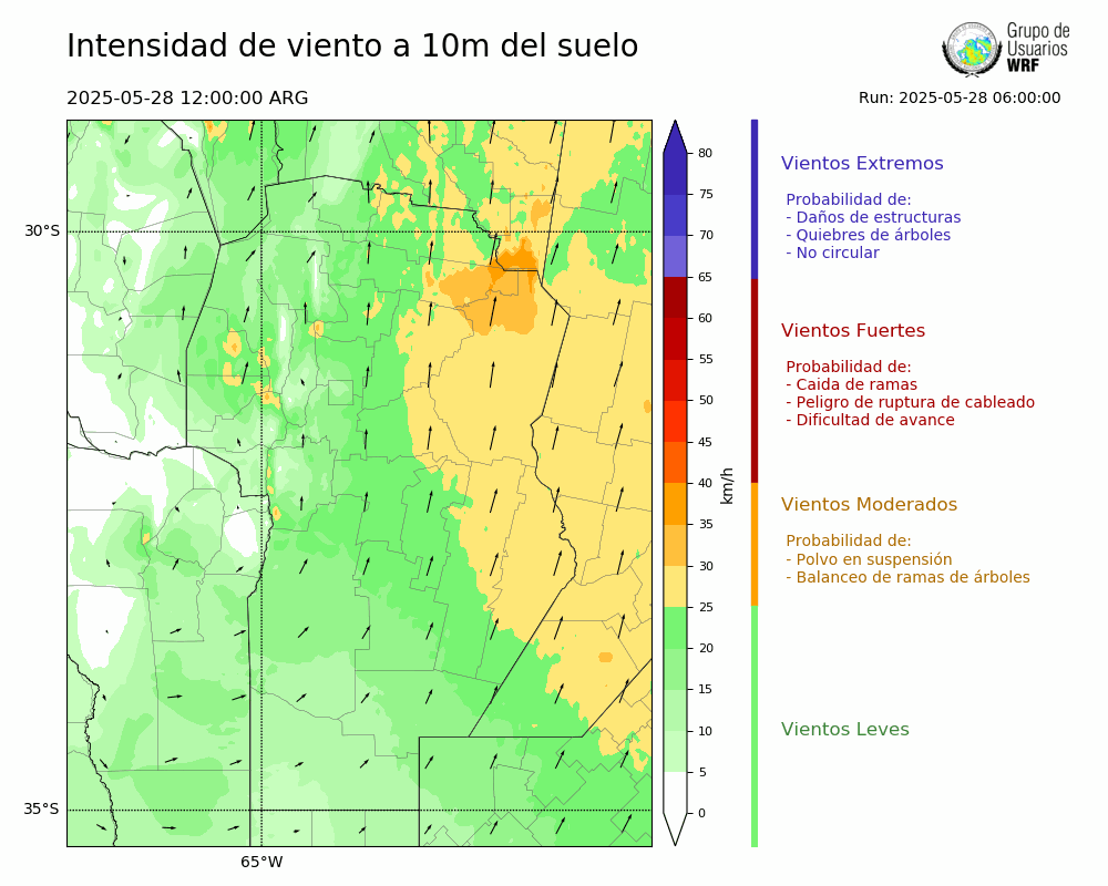 • Intensidad máxima: 13.31 km/h (28/05/2025 12hs.)