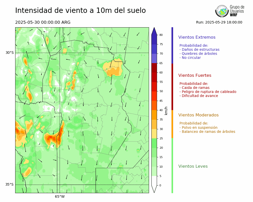 • Intensidad máxima: 7.16 km/h (30/05/2025 04hs.)
