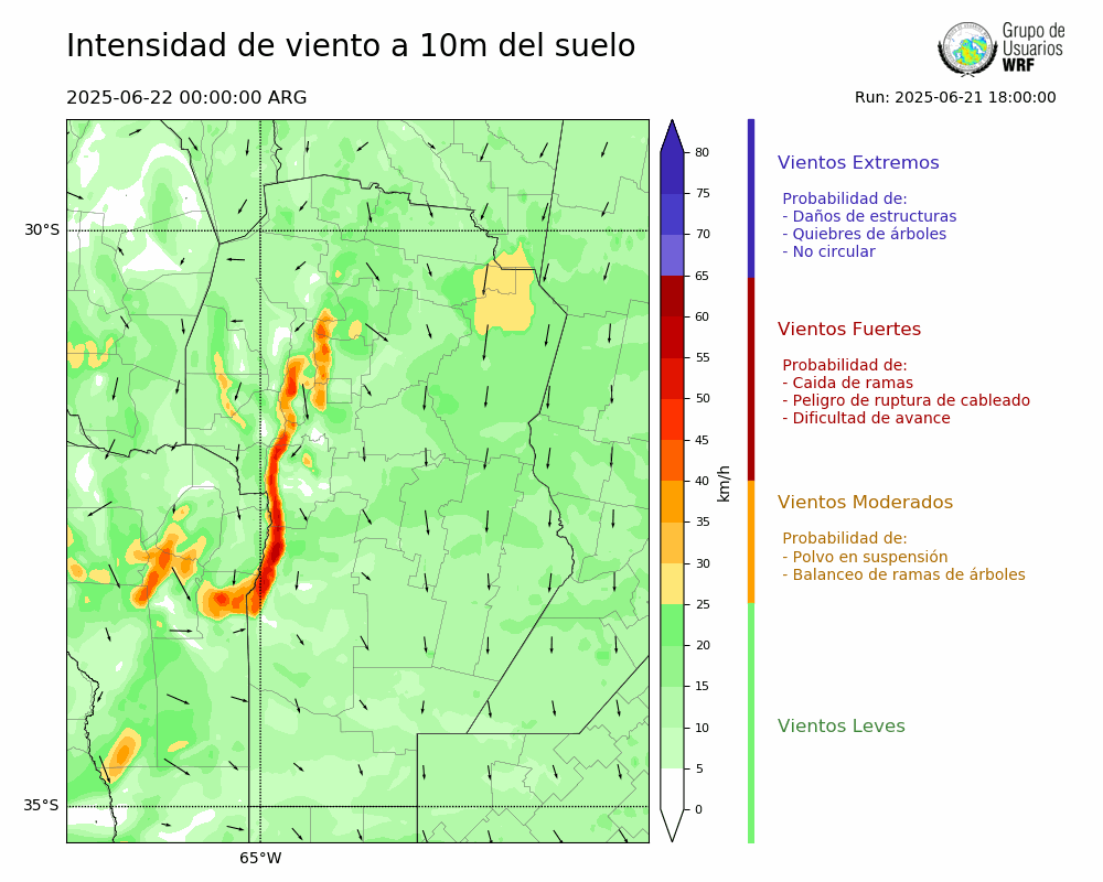 • Intensidad máxima: 11.45 km/h (22/06/2025 08hs.)