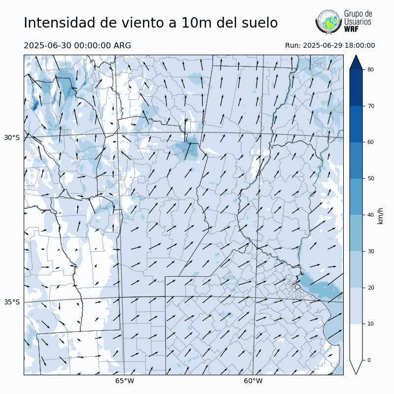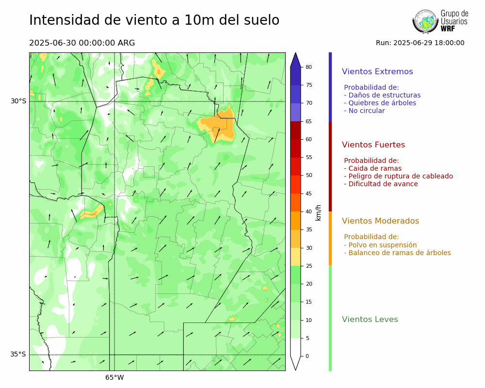 • Intensidad máxima: 14.75 km/h (30/06/2025 01hs.)
