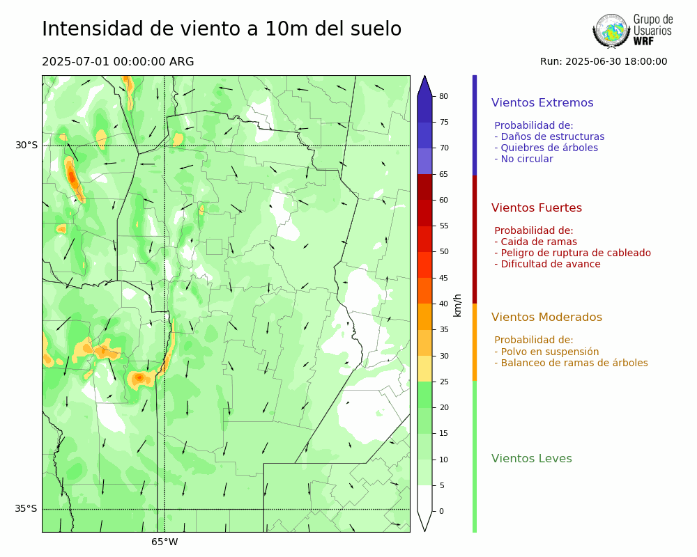 • Intensidad máxima: 17.93 km/h (02/07/2025 04hs.)