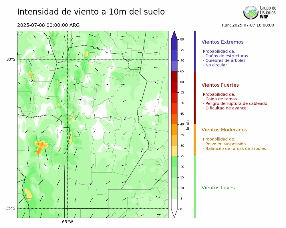 • Intensidad máxima: 12.05 km/h (08/07/2025 11hs.)