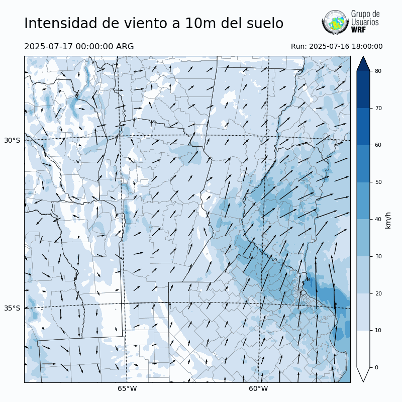• Intensidad máxima: 10.41 km/h (17/07/2025 02hs.)