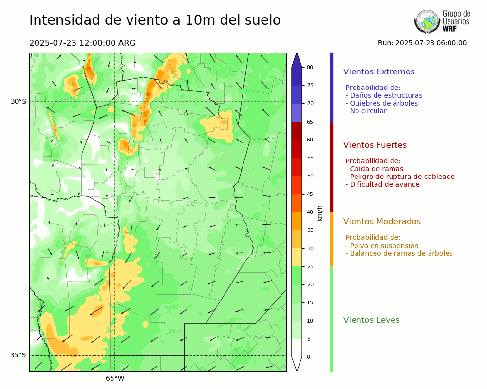 • Intensidad máxima: 6.69 km/h (24/07/2025 06hs.)