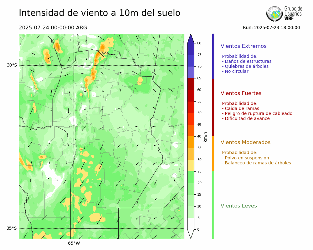 • Intensidad máxima: 7.51 km/h (24/07/2025 05hs.)
