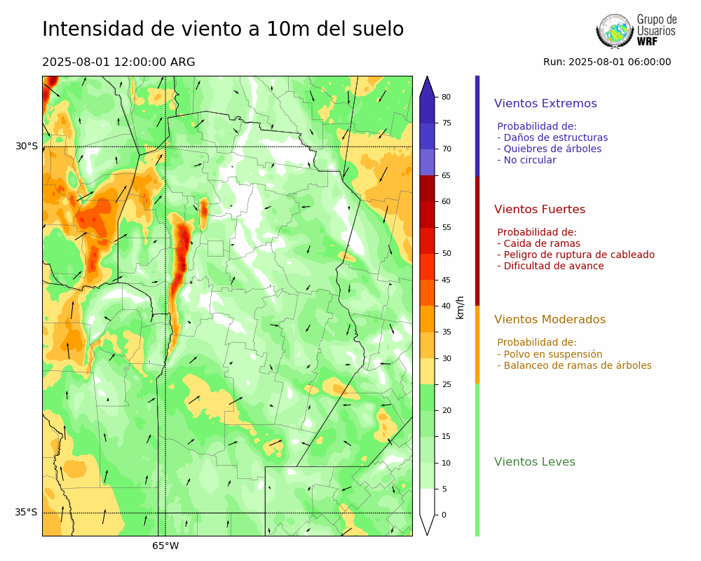 • Intensidad máxima: 11.18 km/h (01/08/2025 13hs.)