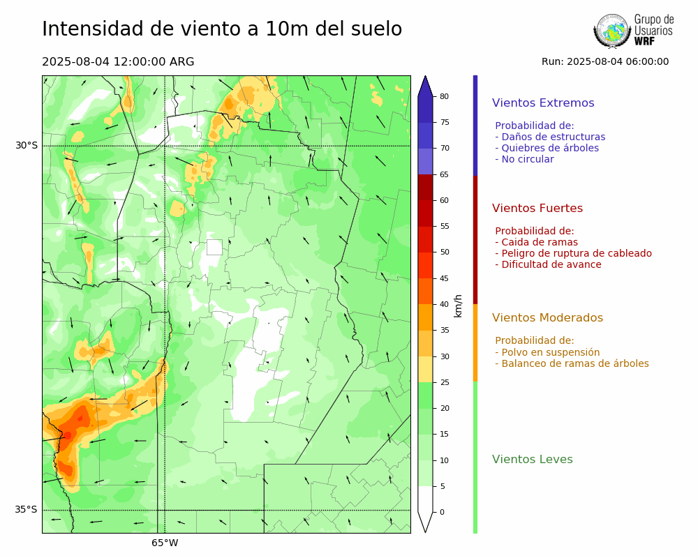 • Intensidad máxima: 3.88 km/h (05/08/2025 04hs.)