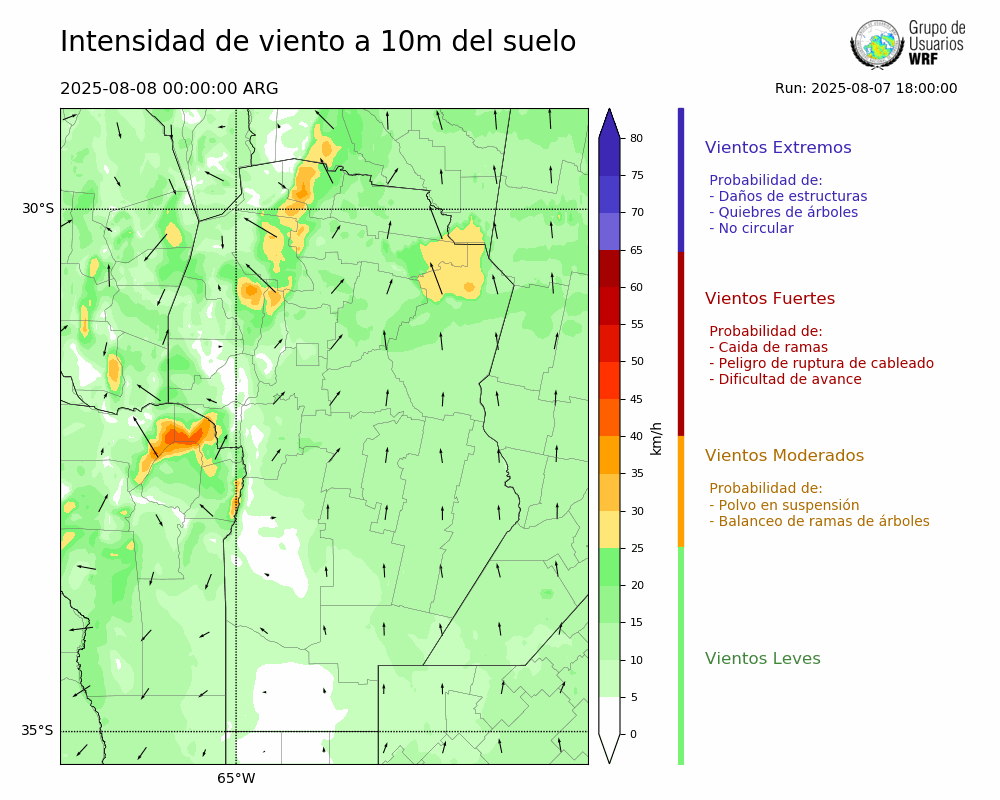 • Intensidad máxima: 5.38 km/h (09/08/2025 05hs.)