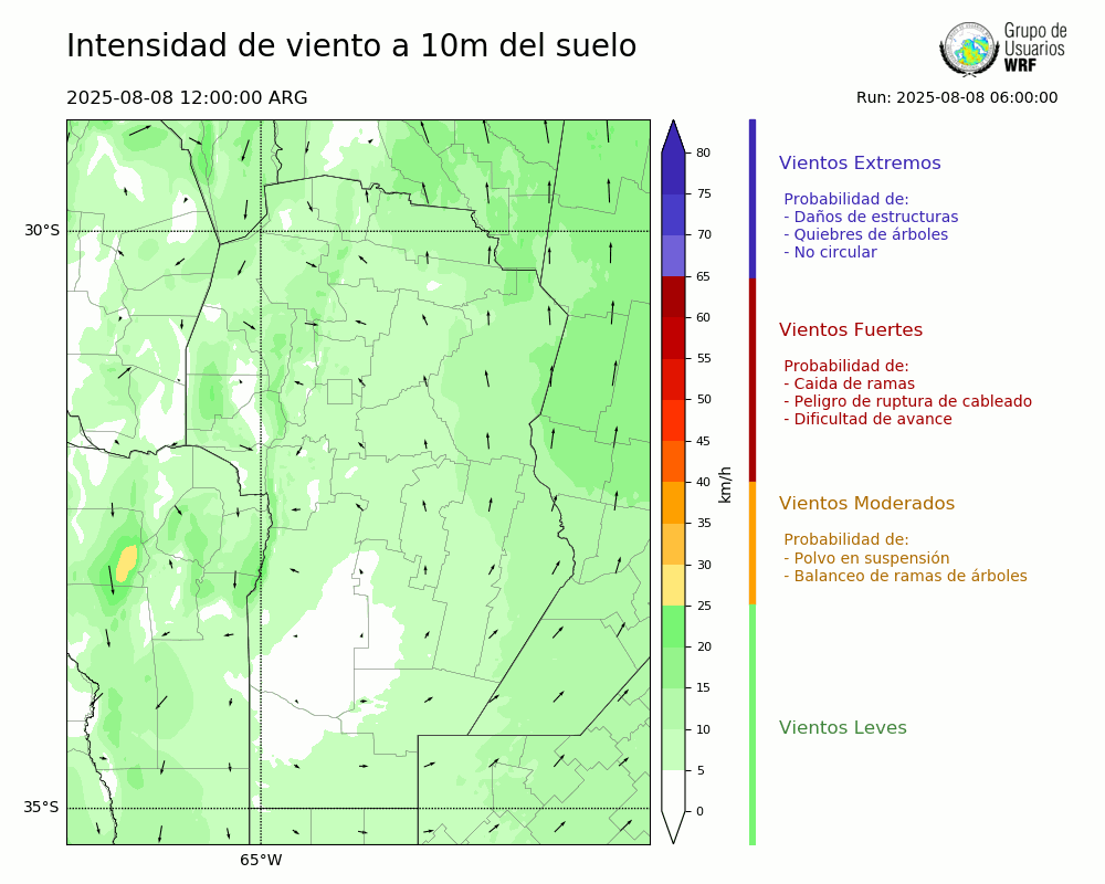 • Intensidad máxima: 10.16 km/h (08/08/2025 19hs.)