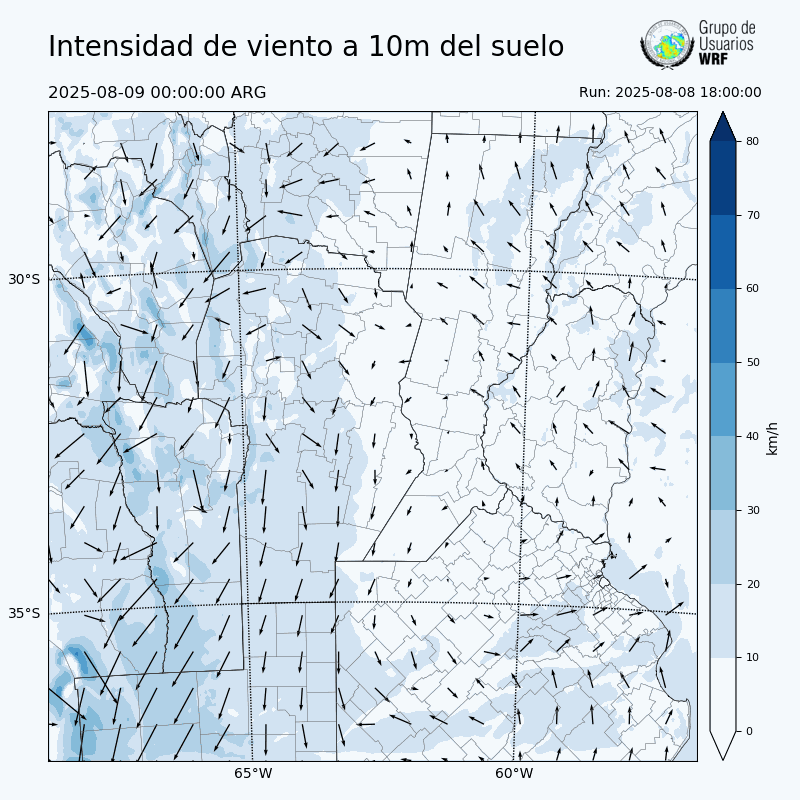 • Intensidad máxima: 6.09 km/h (09/08/2025 05hs.)