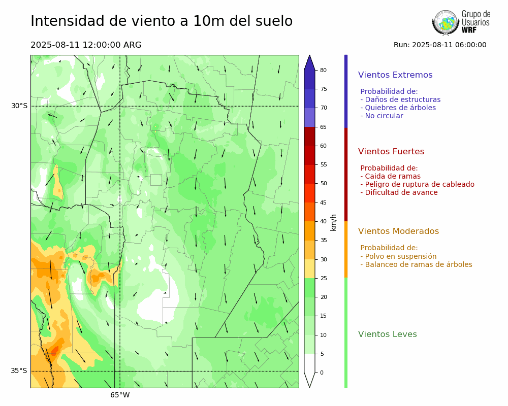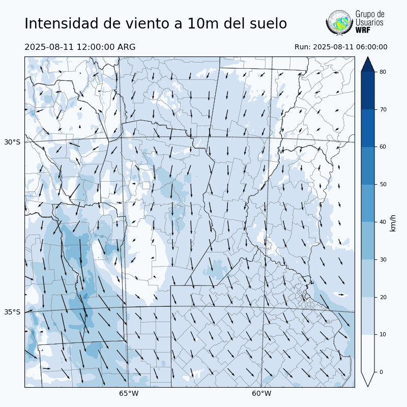 • Intensidad máxima: 12.25 km/h (12/08/2025 07hs.)