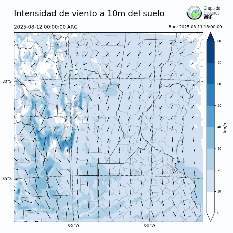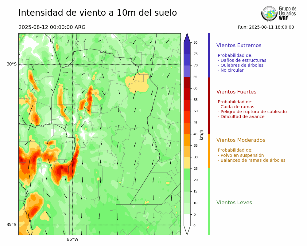 • Intensidad máxima: 12.59 km/h (12/08/2025 05hs.)