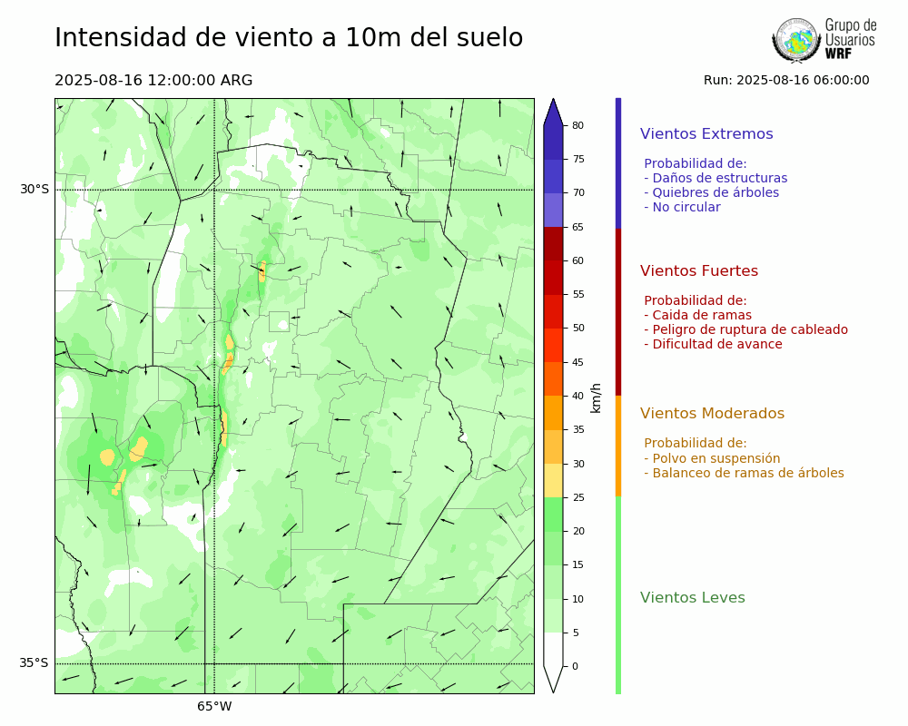 • Intensidad máxima: 12.52 km/h (16/08/2025 20hs.)