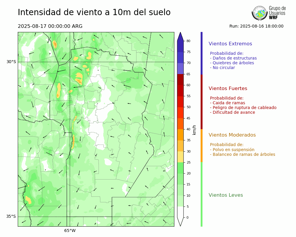 • Intensidad máxima: 7.93 km/h (17/08/2025 03hs.)