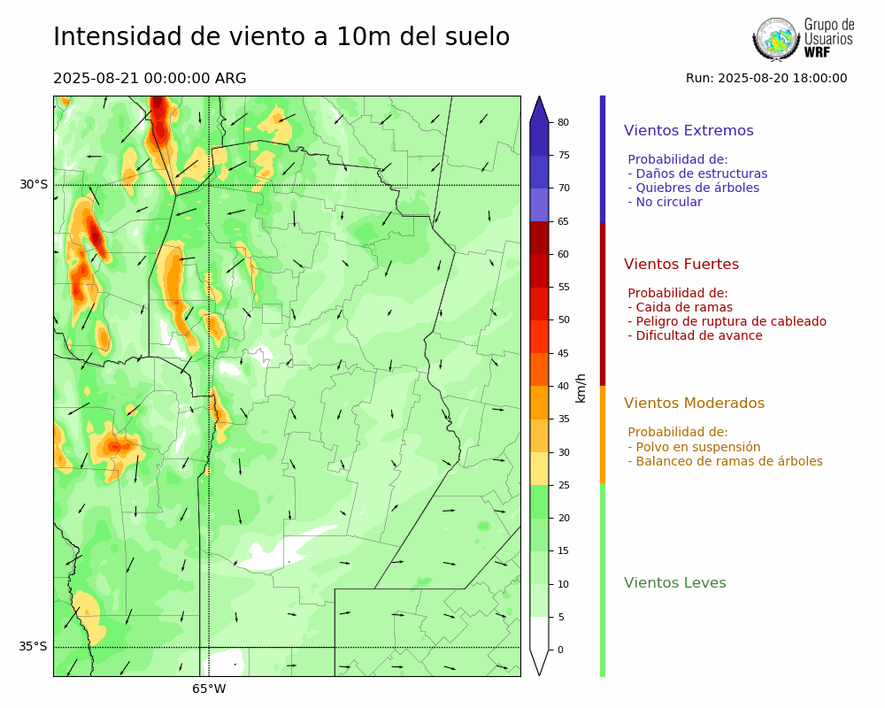 • Intensidad máxima: 6.09 km/h (21/08/2025 21hs.)