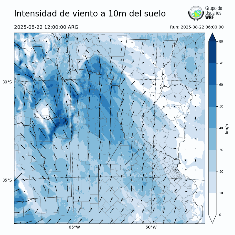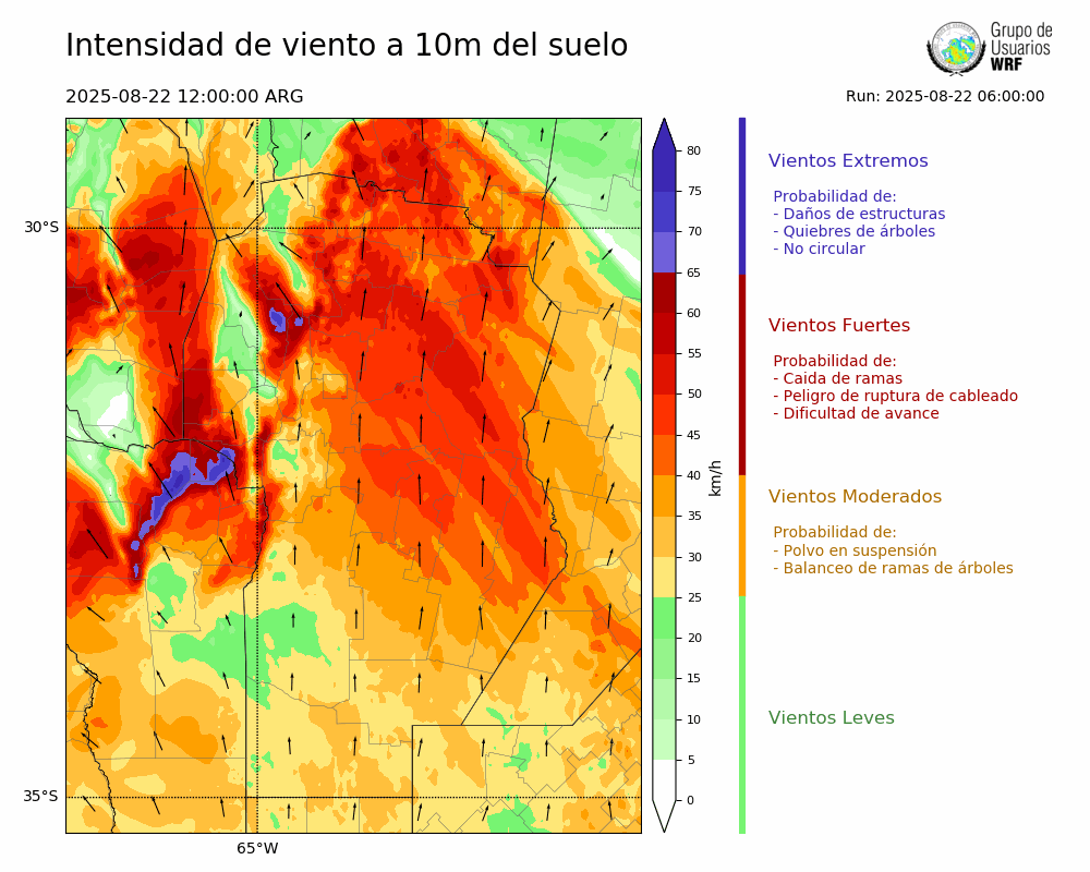 • Intensidad máxima: 30.65 km/h (22/08/2025 12hs.)