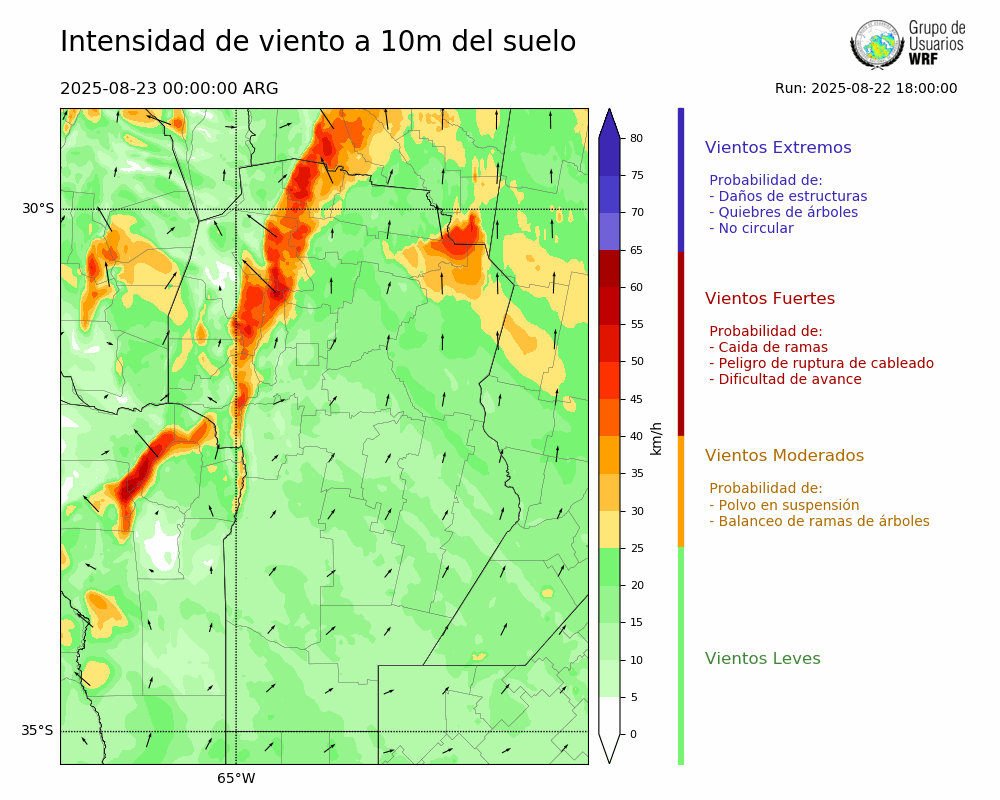 • Intensidad máxima: 19.91 km/h (23/08/2025 06hs.)