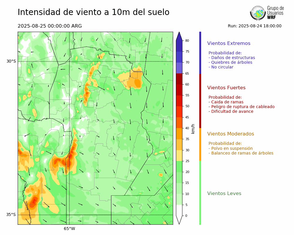 • Intensidad máxima: 12.12 km/h (25/08/2025 05hs.)