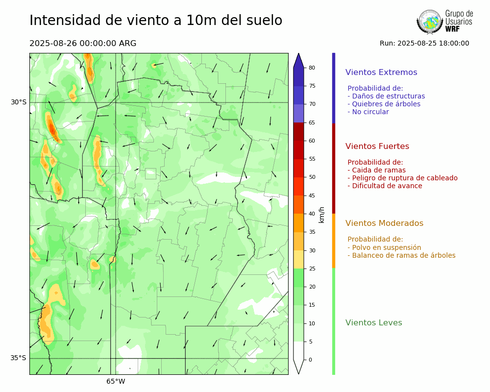 • Intensidad máxima: 9.85 km/h (26/08/2025 05hs.)