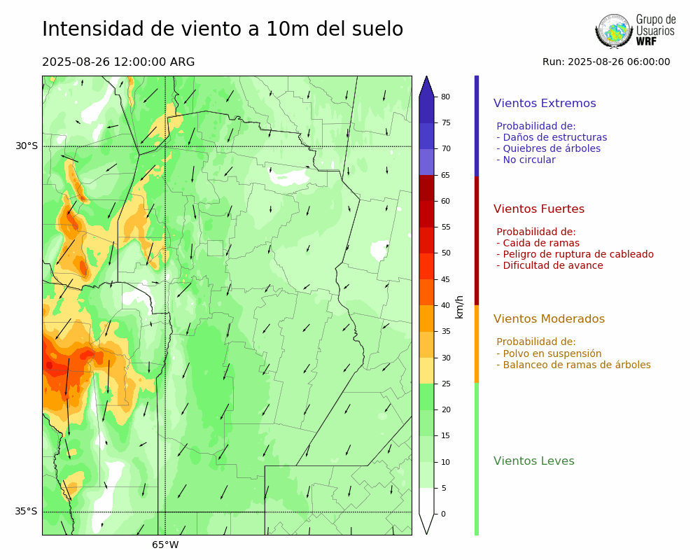 • Intensidad máxima: 19.61 km/h (26/08/2025 18hs.)