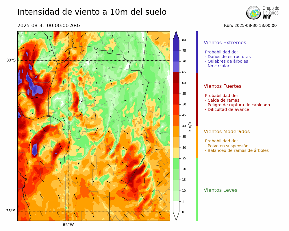 • Intensidad máxima: 19.73 km/h (31/08/2025 01hs.)