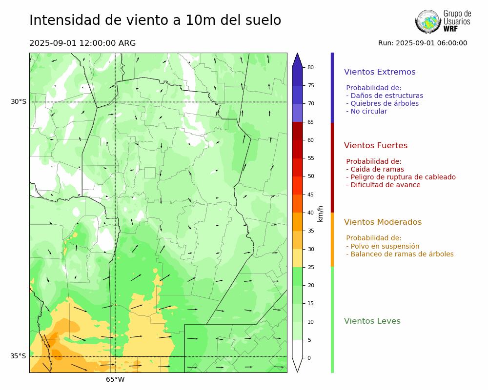 • Intensidad máxima: 10.85 km/h (01/09/2025 20hs.)