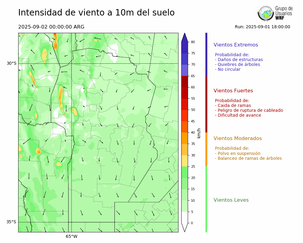 • Intensidad máxima: 6.04 km/h (02/09/2025 23hs.)