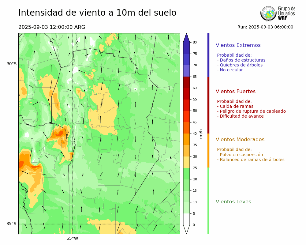 • Intensidad máxima: 19.54 km/h (03/09/2025 12hs.)
