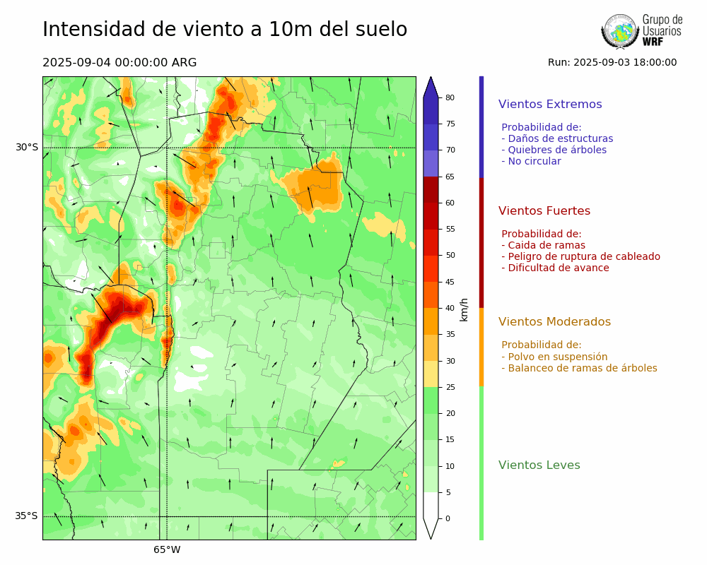 • Intensidad máxima: 18.81 km/h (04/09/2025 06hs.)