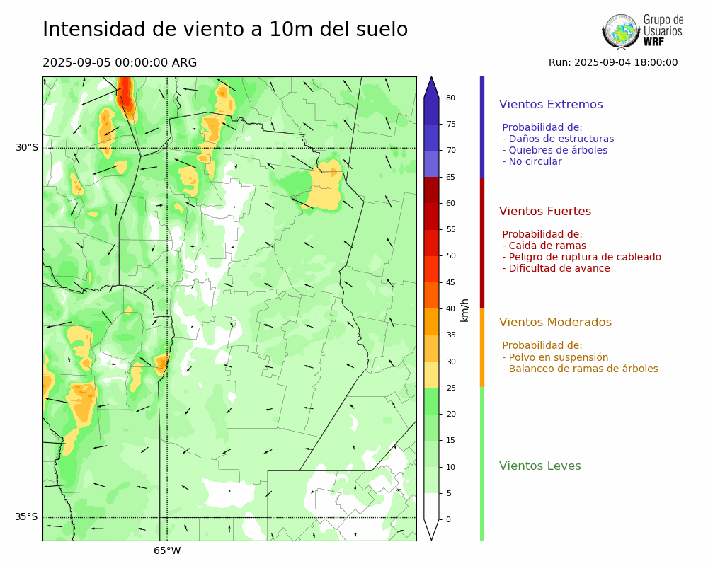 • Intensidad máxima: 9.80 km/h (05/09/2025 03hs.)