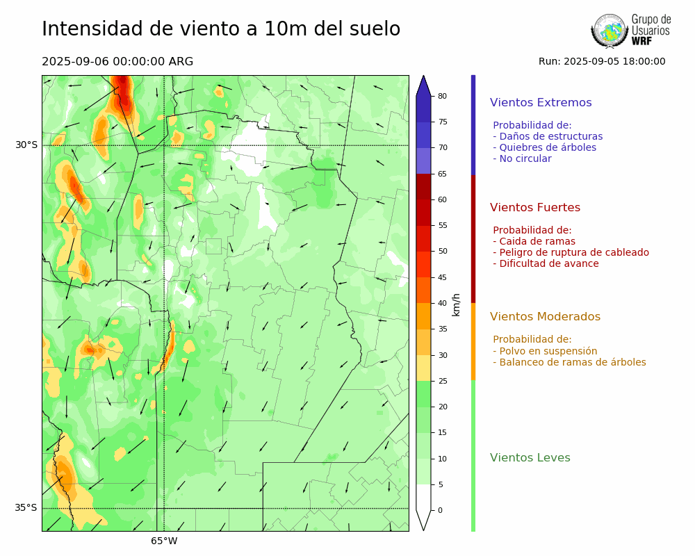 • Intensidad máxima: 16.48 km/h (06/09/2025 11hs.)