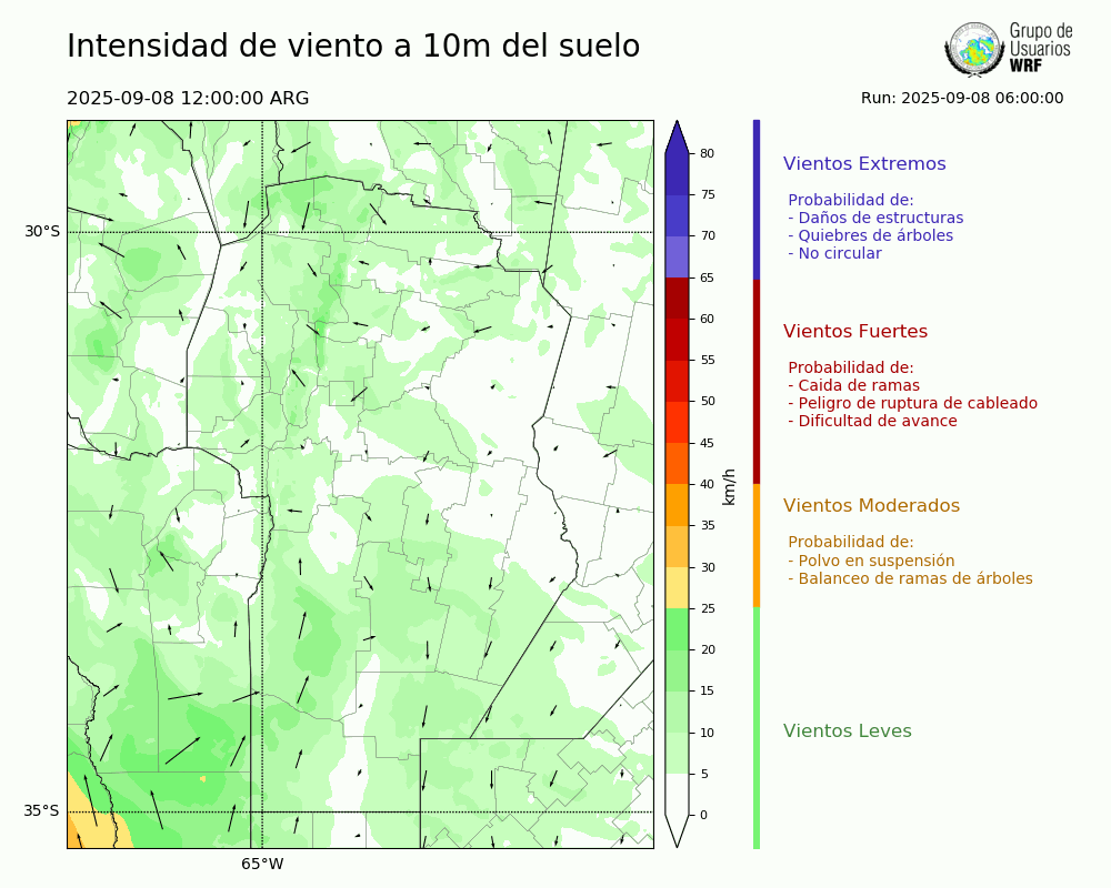 • Intensidad máxima: 13.43 km/h (08/09/2025 17hs.)