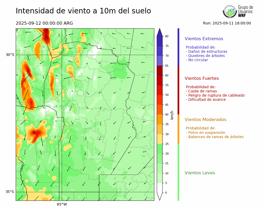 • Intensidad máxima: 5.54 km/h (12/09/2025 01hs.)