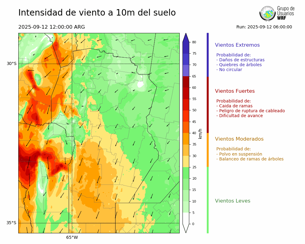 • Intensidad máxima: 7.48 km/h (13/09/2025 06hs.)