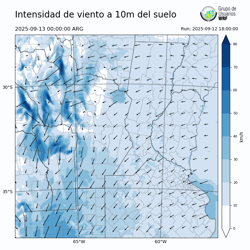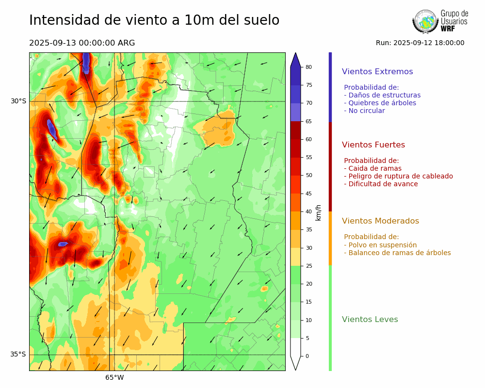 • Intensidad máxima: 18.43 km/h (13/09/2025 11hs.)