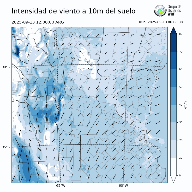 • Intensidad máxima: 20.00 km/h (13/09/2025 17hs.)