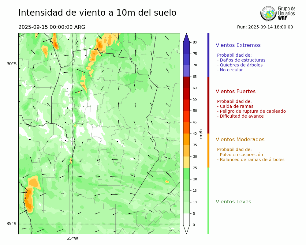 • Intensidad máxima: 5.58 km/h (15/09/2025 07hs.)