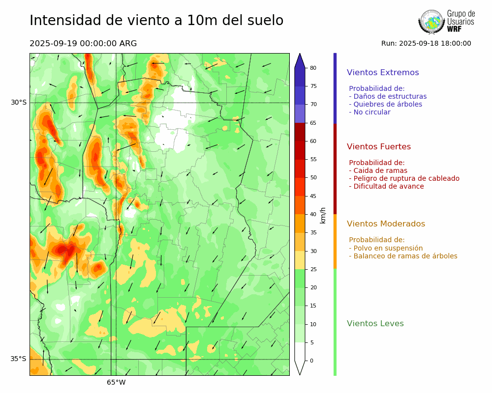 • Intensidad máxima: 9.65 km/h (19/09/2025 01hs.)