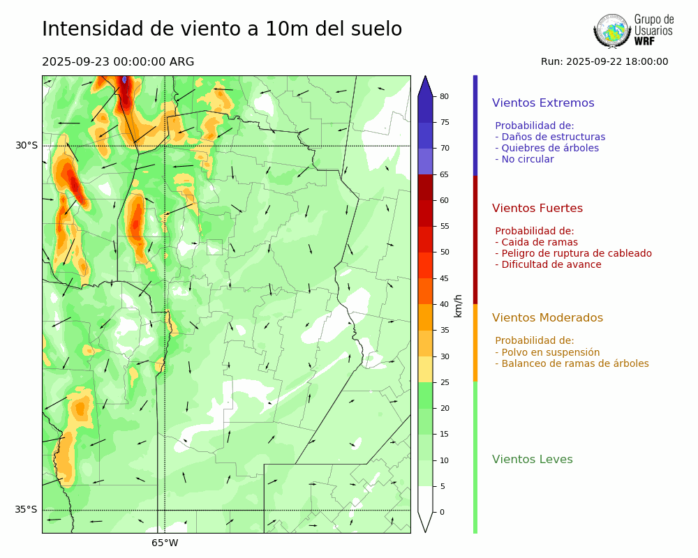 • Intensidad máxima: 5.66 km/h (23/09/2025 01hs.)